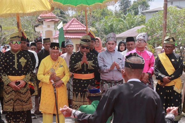 Bupati Pelalawan H. Zukri Misan, SE mengikuti prosesi mandi Balimau Sulthan, dalam rangka menyambut kedatangan bulan Suci Ramadhan 1445.