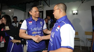 Bacapres Koalisi Perubahan untuk Persatuan Anies Baswedan dan Ketum Partai Demokrat (PD) Agus Harimurti Yudhoyono (AHY) nonton bareng liga voli di.