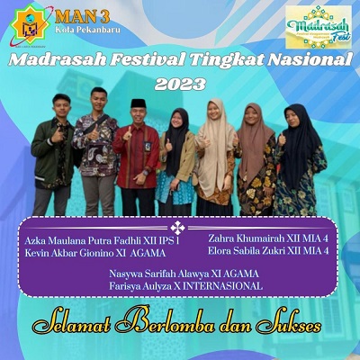 Sebanyak enam siswa utusan MAN 3 Kota Pekanbaru akan mewakili Provinsi Riau ditingkat Nasional dalam ajang Madrasah Fest 2023..