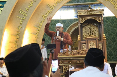 Tabligh Akbar peringatan tahun baru Islam 1445 H yang ditaja Pemerintah Kota (Pemko) Pekanbaru bertempat di Masjid Agung.