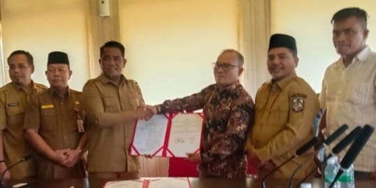 Bupati Pelalawan H. Zukri melakukan penandatanganan kesepakatan MOU, yakni pengaspalan jalan Desa Tanjung Air.