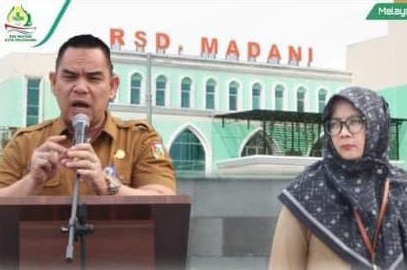 Mantan Kepala desa Bagan Limau Kecamatan Ukui inisial (P) dan seorang Kaur Keuangan.