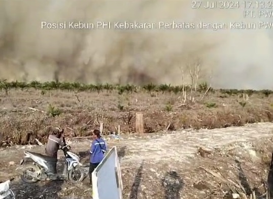 Diperkirakan ratusan Hektar lahan kebakaran terjadi diatas areal HGU perusahaan sawit PT. Permata Hijau Indonesia (PHI) atau di Langgam Inti, Desa Pangkalan.