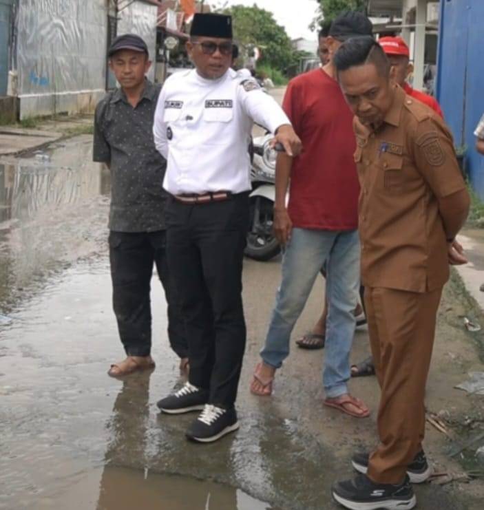 Saat peninjauan, Bupati Zukri menemukan adanya banyak pendangkalan pada sejumlah saluran drainase. Kondisi ini menyebabkan daya tampung air berkurang, sehingga ketika debit air hujan tinggi, saluran tidak mampu menampung aliran air dan berpotensi menimbulkan genangan atau banjir di permukiman warga.
